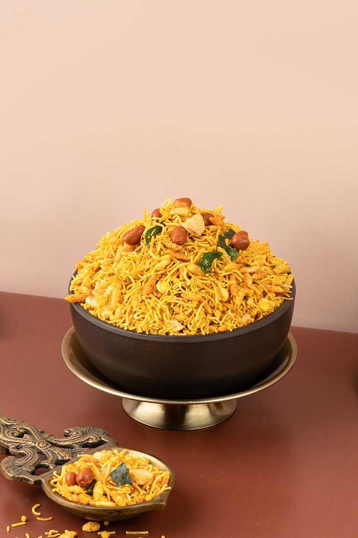 Avul Mixture is a popular South Indian snack that combines puffed rice (avul) with a variety of roasted nuts, fried gram, and a mix of spices. The puffed rice provides a light, crunchy base, while the nuts and fried gram add a satisfying crunch. The spices, including chili powder, cumin, and mustard seeds, give the mixture a delightful kick. Often enjoyed during festivals or as a casual snack, Avul Mixture is perfect for munching any time of the day. Its crunchy texture, balanced flavors, and light nature make it a favorite among snack lovers.